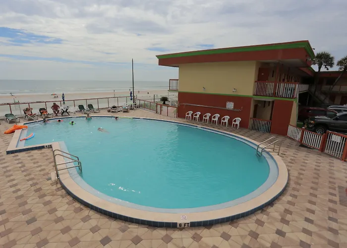 Featuring an outdoor swimming pool, a golf course and a sundeck, the 3-star Beachside Motel Daytona Beach comprises air-conditioned rooms with views of the sea. The property is located 3.2 km from Sunshine Park Mall in Daytona Beach Shores district.